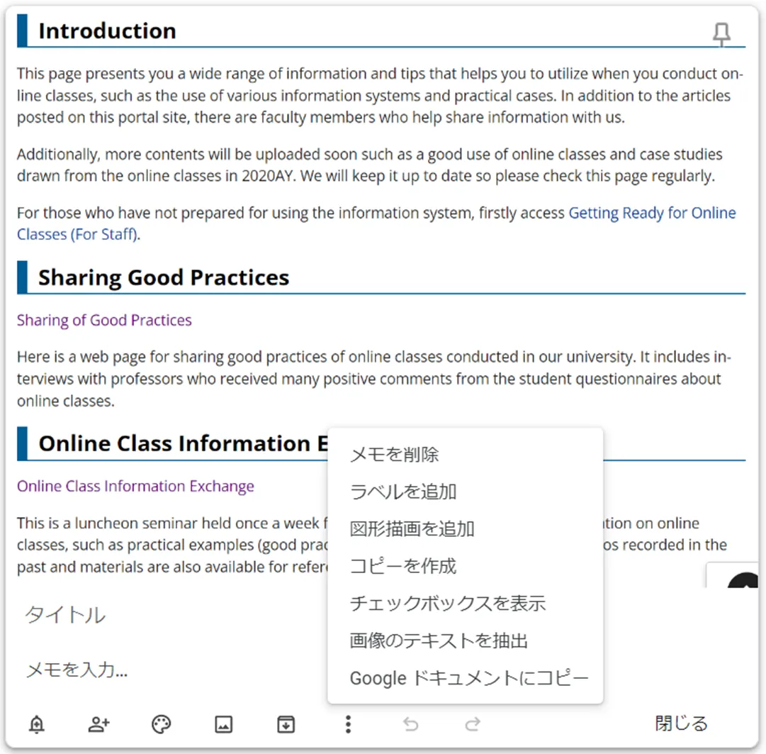 ここでは,画像やメモを保存できるツールとしてGoogle Keepを取り上げ,その特徴について説明します.主な使い方はGoogle Keepのヘルプで確認してください.