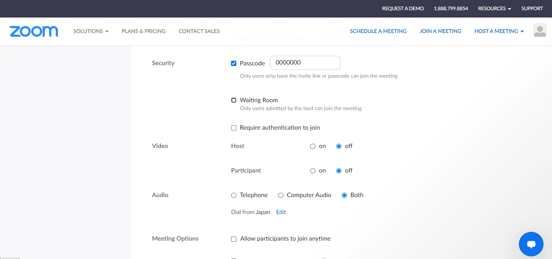 • (1) ”Waiting Room” & (2) ”Require authentication to join”: These fields can be found under the “Security” section in the “Schedule a Meeting” page. Please also refer to the “Scheduling a Zoom Meeting (Web Portal)” page for procedures to schedule a meeting.