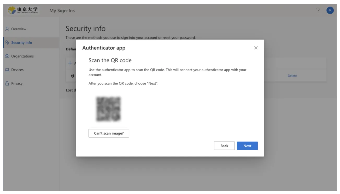 “Microsoft Authenticator” is an MFA authentication application provided by Microsoft. Using this app is convenient since UTokyo Account’s MFA adopts Microsoft’s system. If you have more than one phone, you can register the same authenticator apps on these phones, making them two or more verification methods.