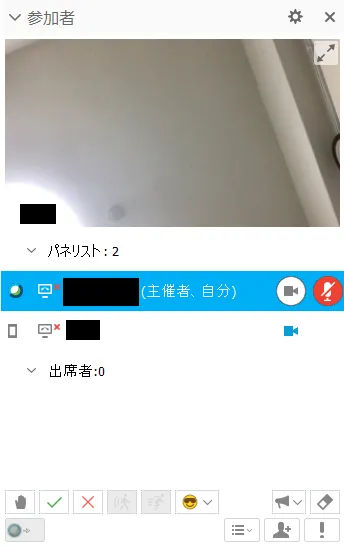 - Participant: Participants can share their camera screen and mute/ unmute their microphone. However, if organizers or presenters mute participants, the unmute function becomes locked.